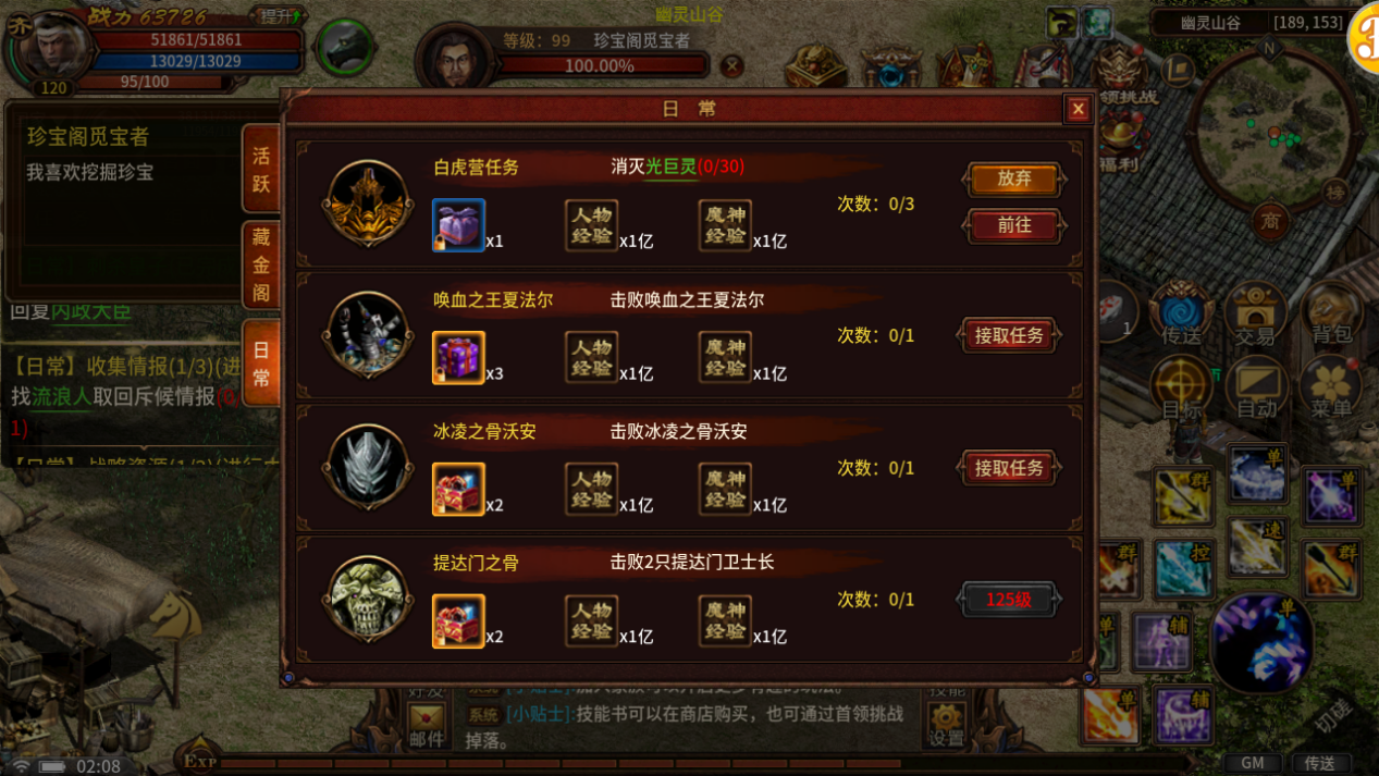 日常活跃任务是每天都可以完成的任务,它们通常会要求玩家进行一些重复性的活动,如击败一定数量的怪物、收集物品等。完成日常任务可以获得大量的经验和奖励,帮助玩家稳定提升实力。